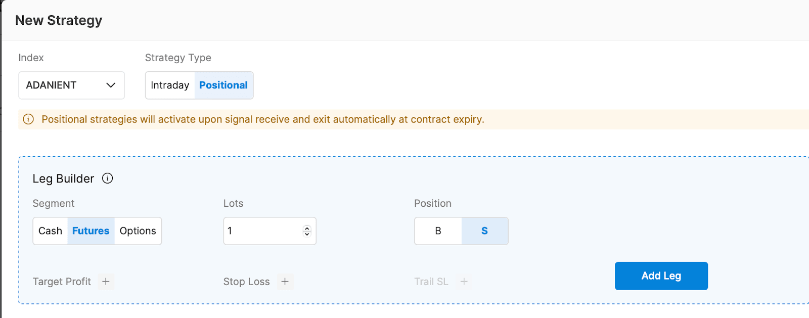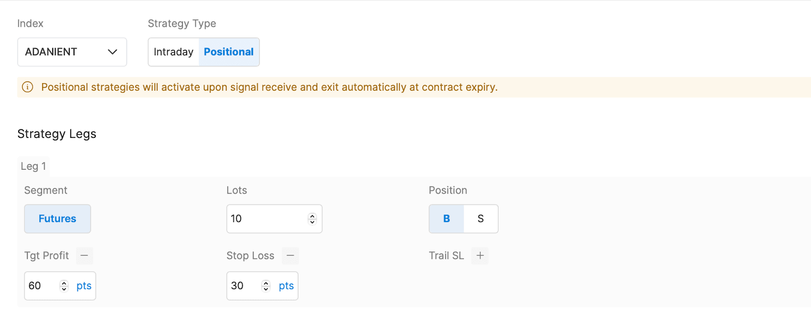 - Define the Trade you want to execute with Quantity, Position, Target and Stoploss.