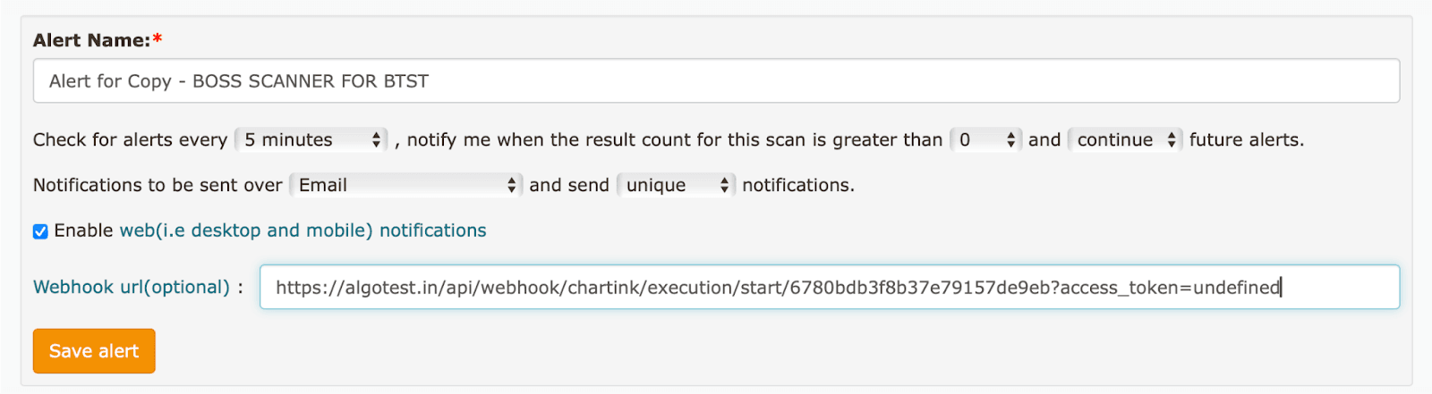 Step 3: Connect Chartink Alerts with AlgoTest Signals