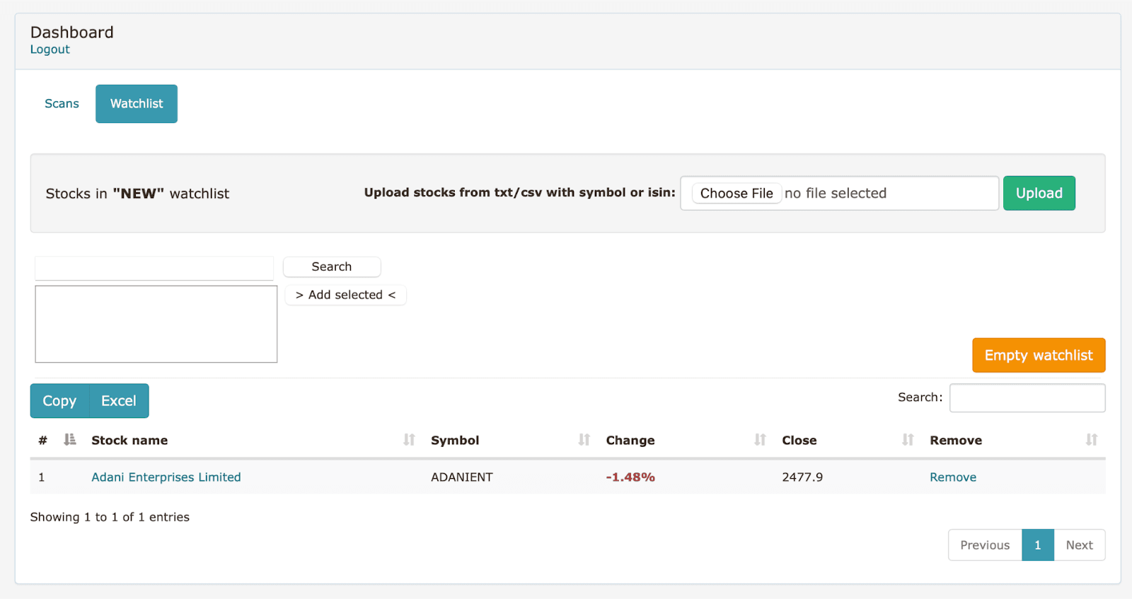 - Change the segment to your own watchlist of instruments. (e.g., “Adani Enterprises Limited”)