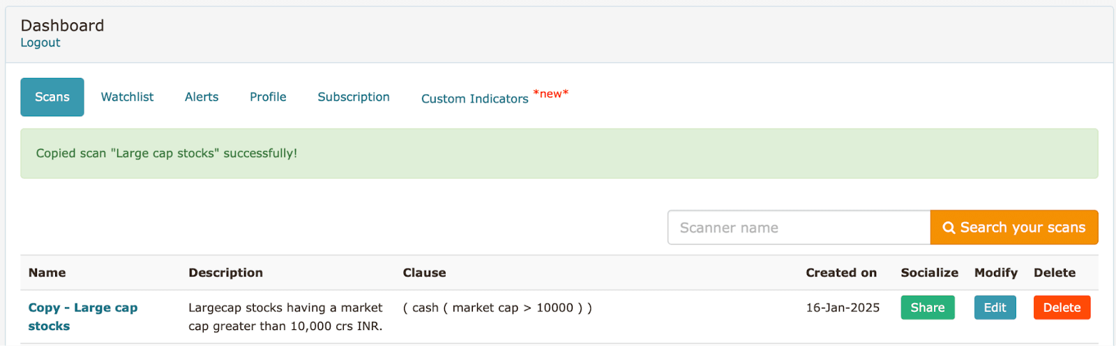 - Copy the Scan and then open it from the scans dashboard.