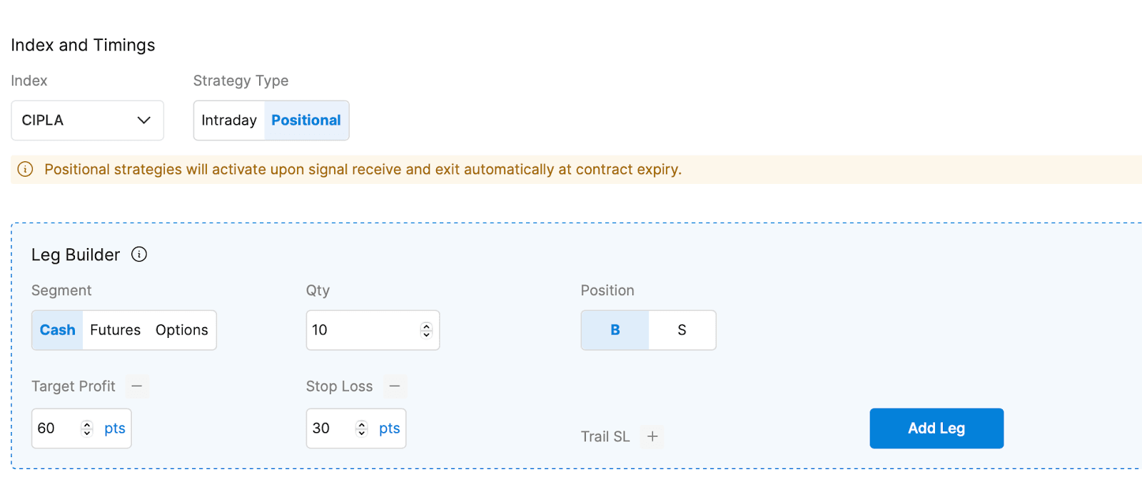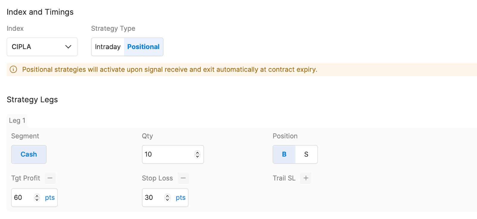 - Define the Trade you want to execute with Quantity, Position, Target and Stoploss.