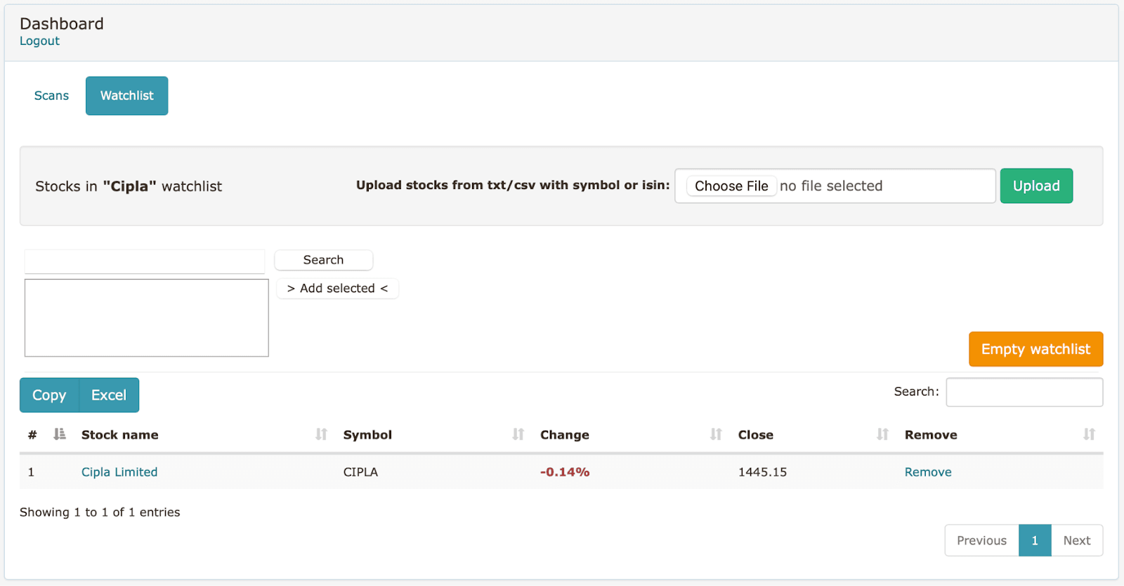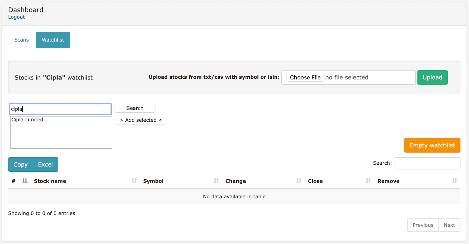 - Change the segment to your own watchlist of instruments. (e.g., “CIPLA Limited”)