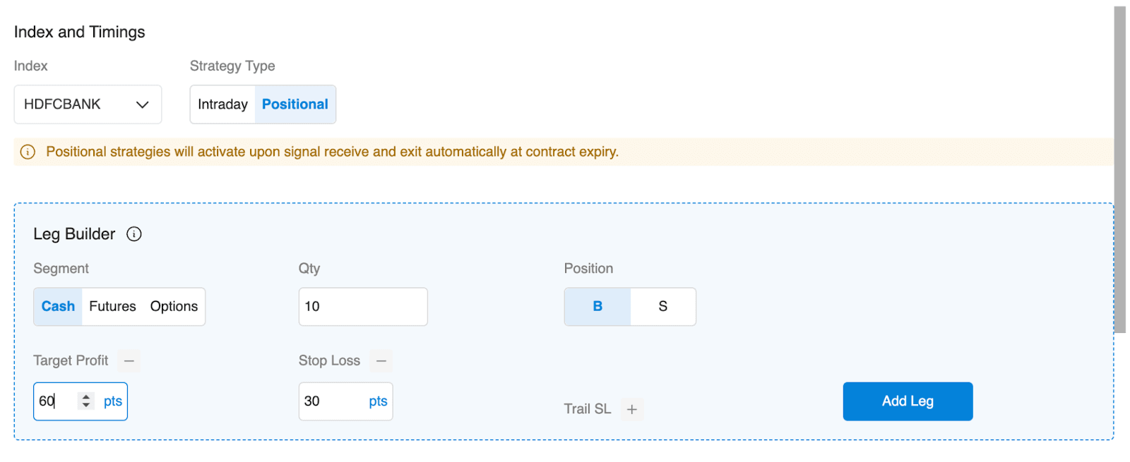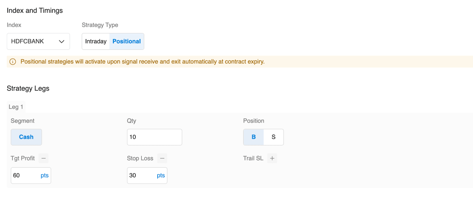 - Define the Trade you want to execute with Quantity, Position, Target and Stoploss.