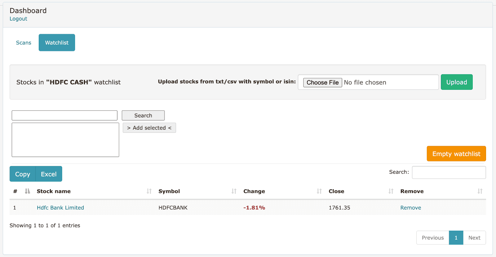 - Change the segment to your own watchlist of instruments. (e.g., “HDFC CASH”)