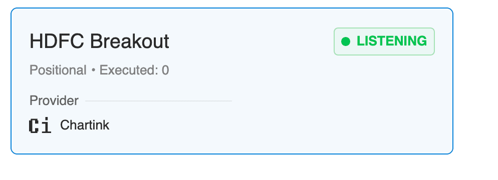 AlgoTest Signals allow you to automate your trades based on predefined conditions from Chartink. When a breakout condition is met in Chartink, an alert is sent to AlgoTest, which executes the trade on your broker terminal.