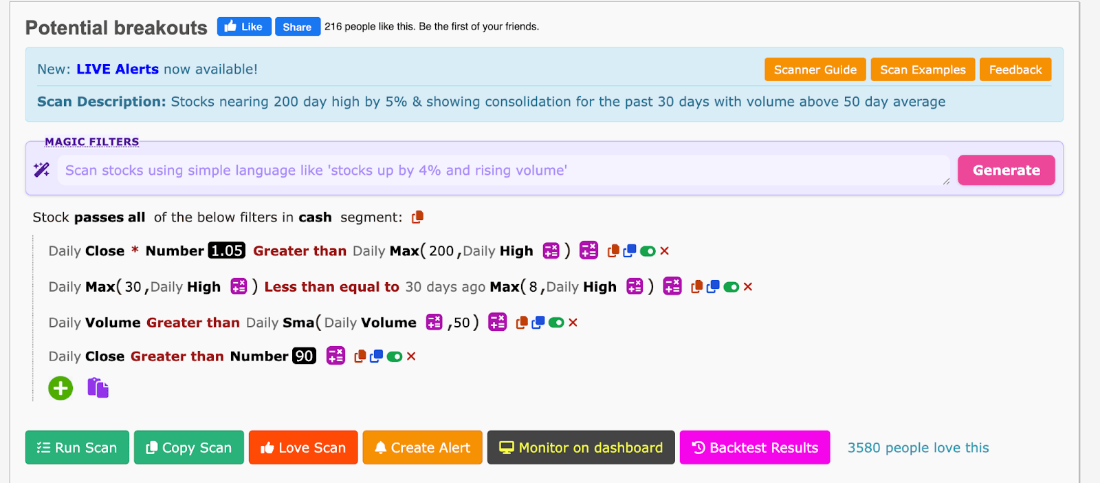 Potential Breakouts filters explanation: