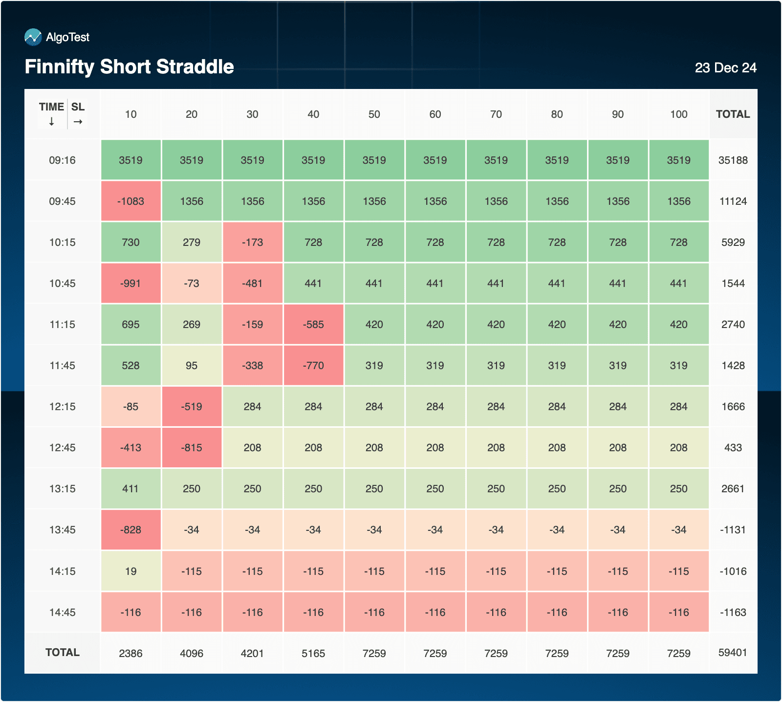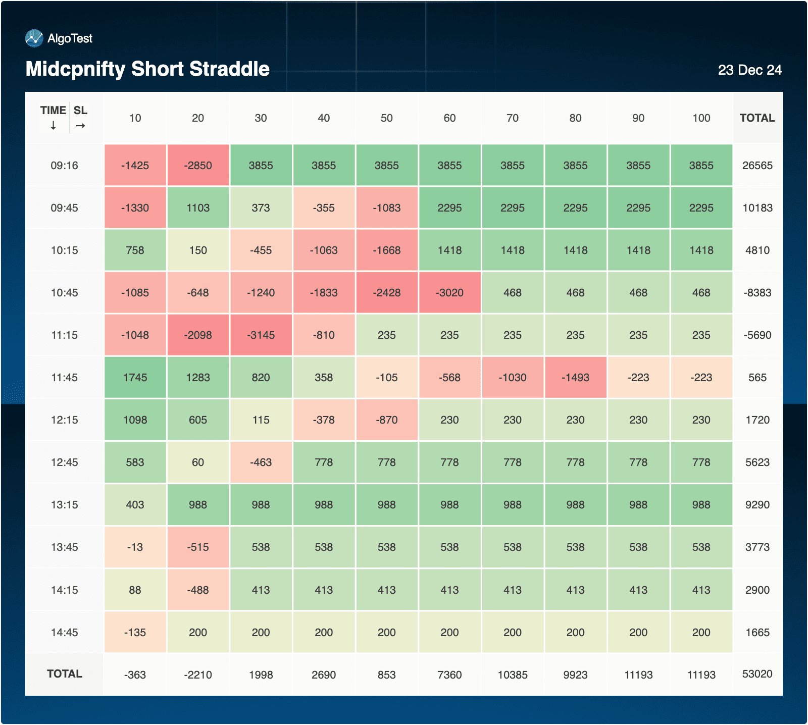 AlgoTest heatmaps make it easier for you to understand a clear picture of your trading performance. These heatmaps visually represent data like time, performance metrics, and win rates. Think of them as a map highlighting where your strategies work best and where they stumble. For example, a heatmap might reveal that trades during certain hours of the day consistently yield higher profits.