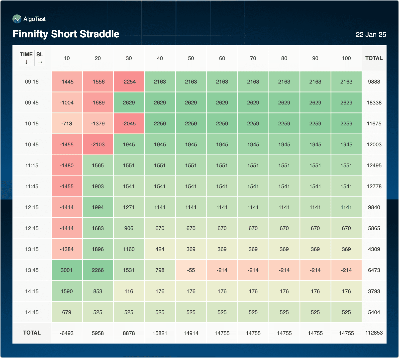 - The most consistent profits are from 9:45 AM to 11:45 AM, with all SL levels performing positively. SL levels between 40–70 yield stable returns.