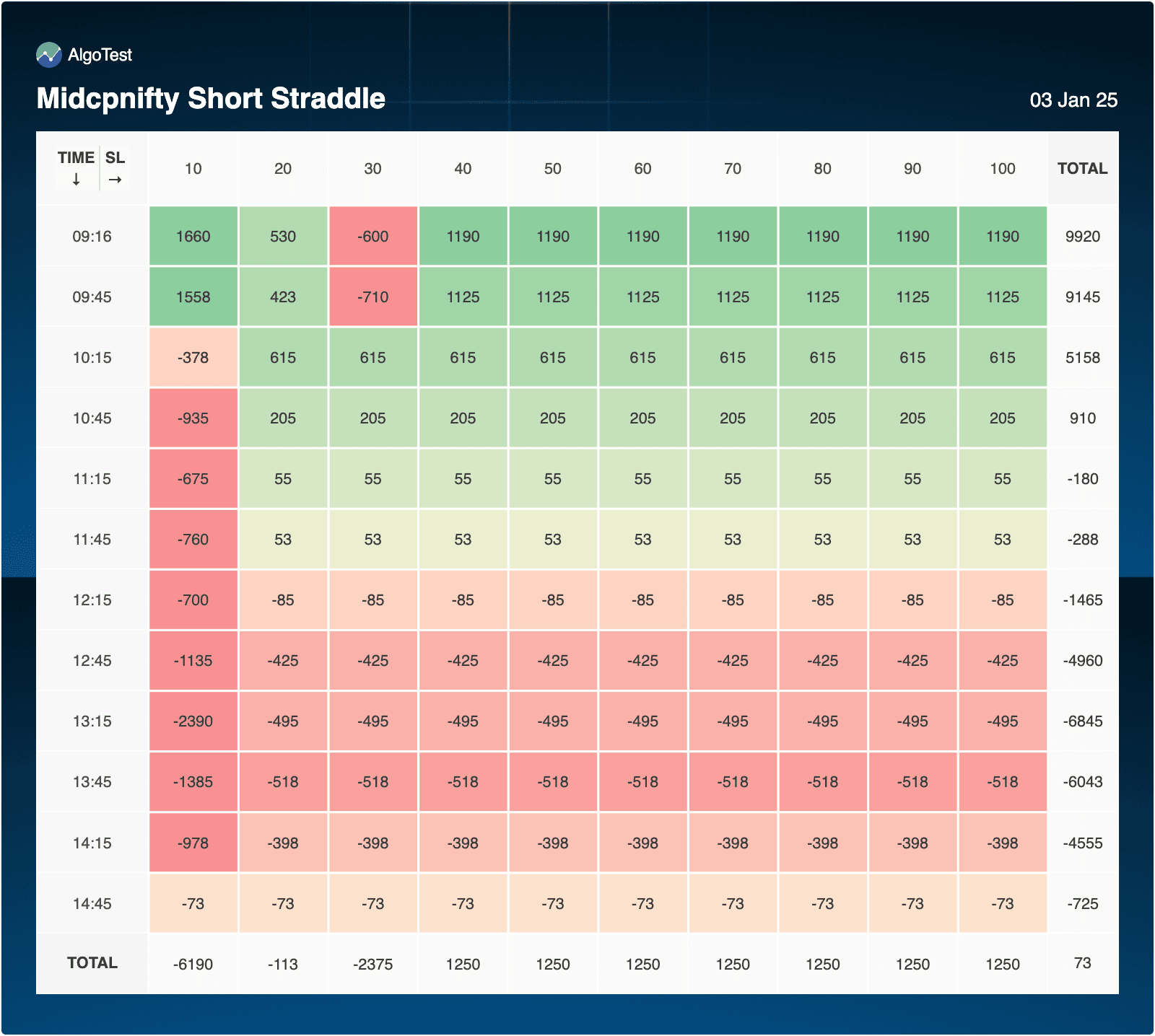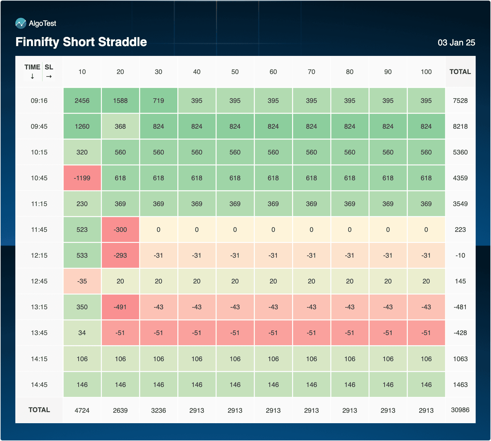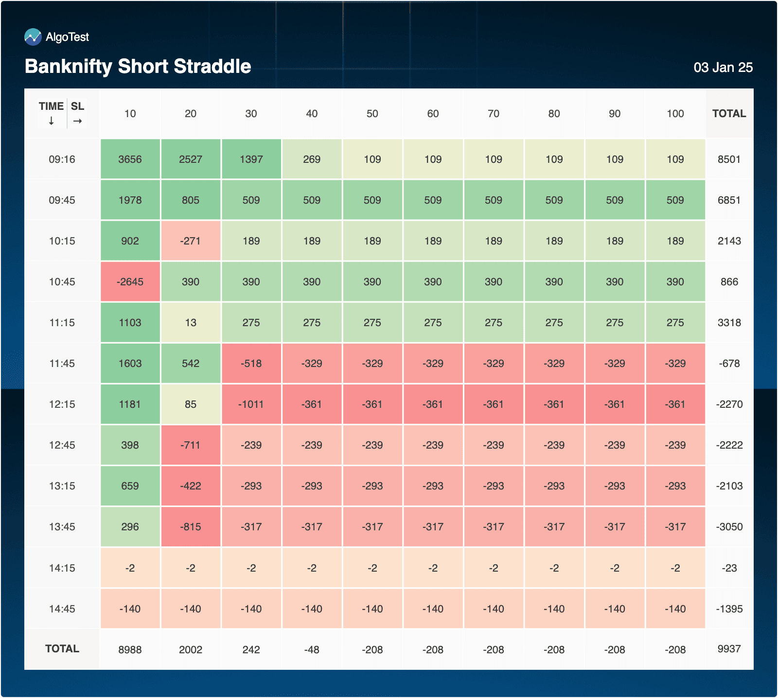 - Consistently profitable across most SL levels during the early hours (9:16 to 11:15).