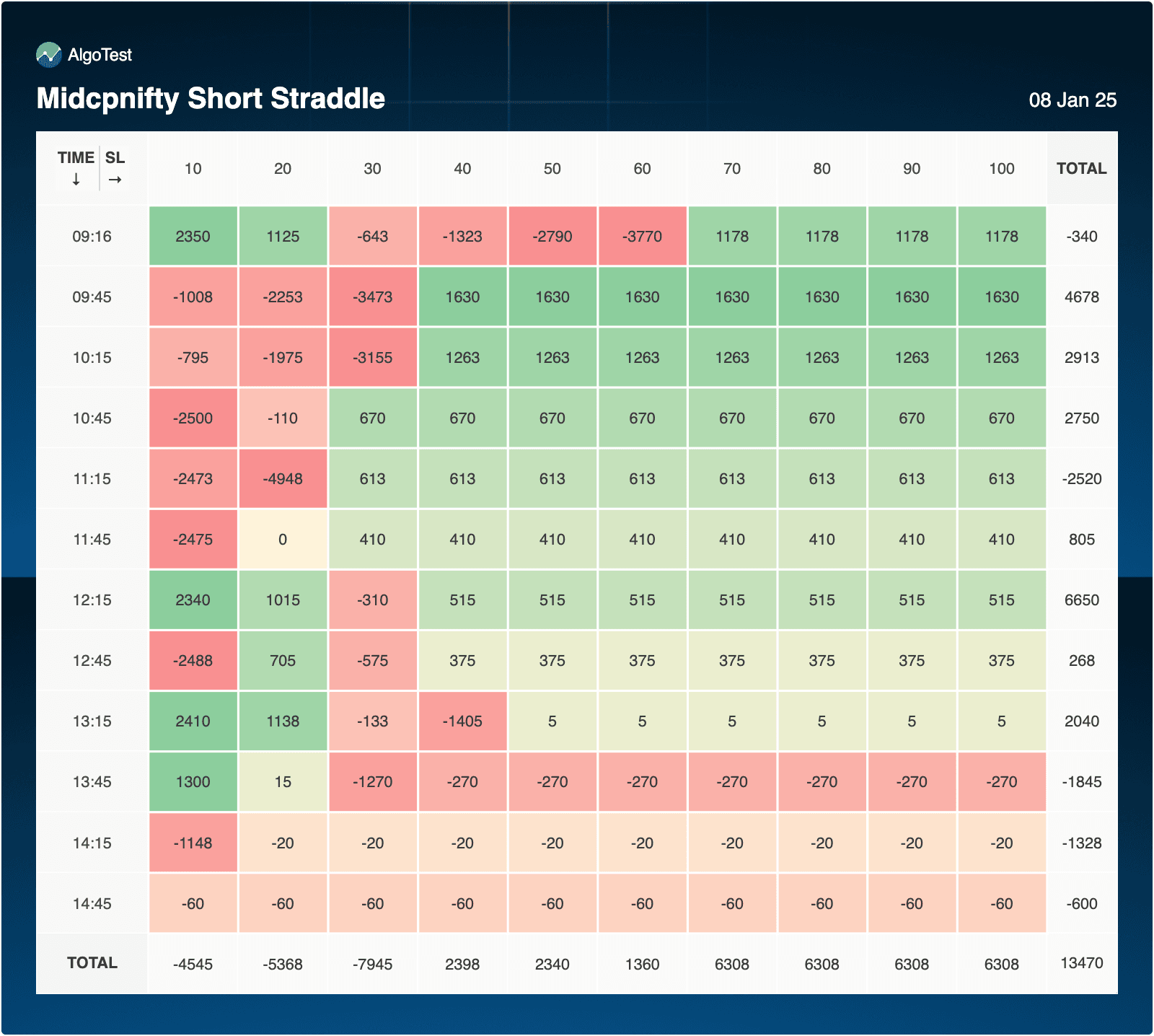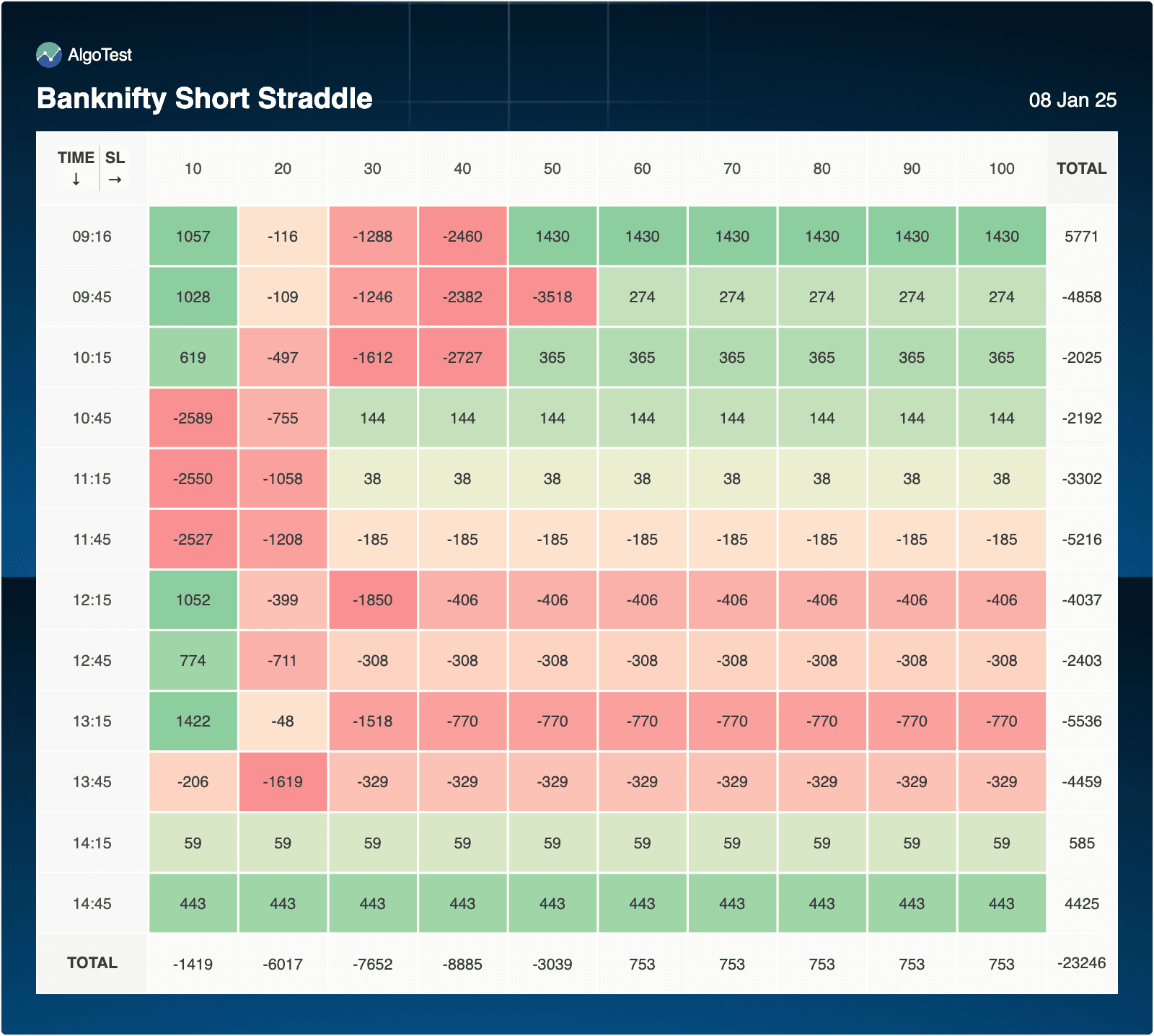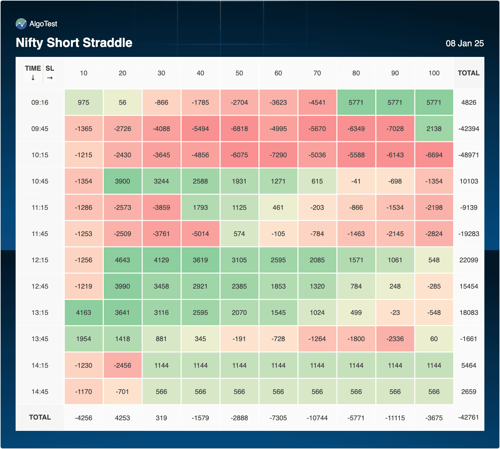 - 09:16 performed well with profits of 5,771 at SL=50 and higher. This indicates that early morning slots tend to capture directional moves effectively.