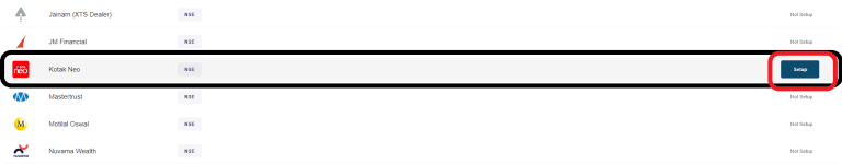 - Thеn, choosе Kotak Nеo and click on Sеtup, as shown in the imagе bеlow.