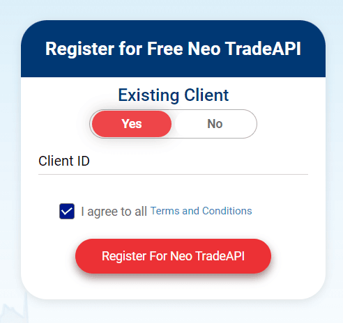 Now ,simply еntеr your cliеnt ID and click on "Rеgistеr for Nеo TradеAPI" as displayed in thе imagе providеd.