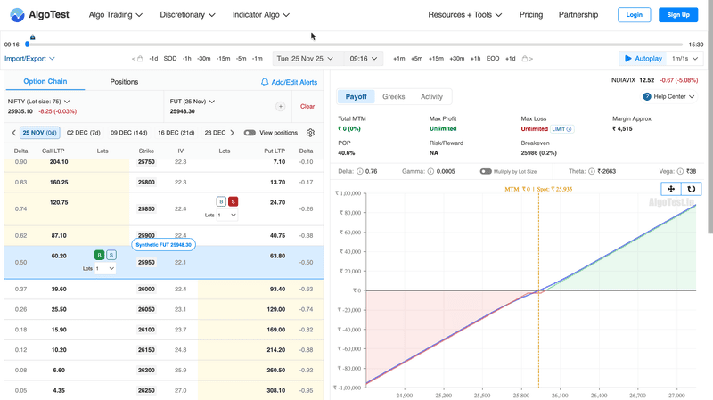 AlgoTest Option Simulator is currently the most advanced, realistic, and widely used replay-based simulator in India.