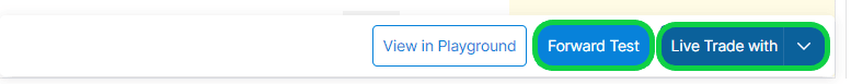 - To Execute your strategy for live trading, click on the “Live Trade with” button as shown in the image below.