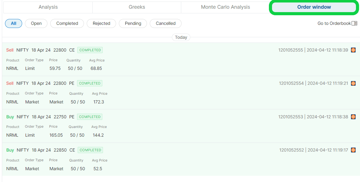 Now click on “Place All Orders” to execute our strategy. We also have the option to choose if we want to set the order type as limit or market.
