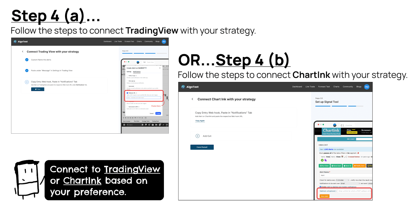 OR Follow the steps to connect ChartInk with your strategy.