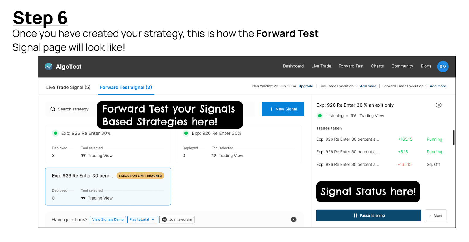 Once you have created your strategy, this is how the Forward Test Signal page will look like!