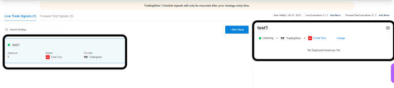 If all the steps have been executed correctly, your strategy will display a 'listening' status within the SIGNAL tab in AlgoTest, as depicted in the image below.