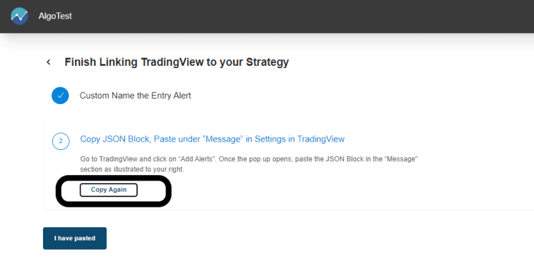 - Switch to the AlgoTest tab, and select 'I have pasted.'