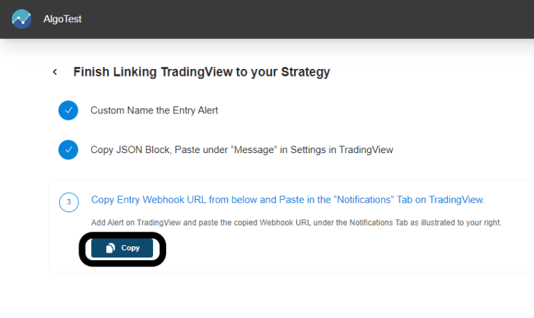 - Now, switch over to the AlgoTest tab and select 'I have pasted.' This will display the webhook URL along with a 'Copy' button. Click on 'Copy,' as demonstrated in the image below. You'll need to paste this webhook URL in the 'Notification' tab we accessed in the previous step.