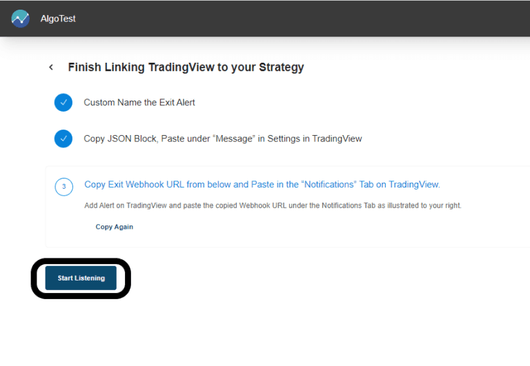- Finally, return to the AlgoTest tab and click on 'Start Listening,' as indicated by the black marker in the image below.