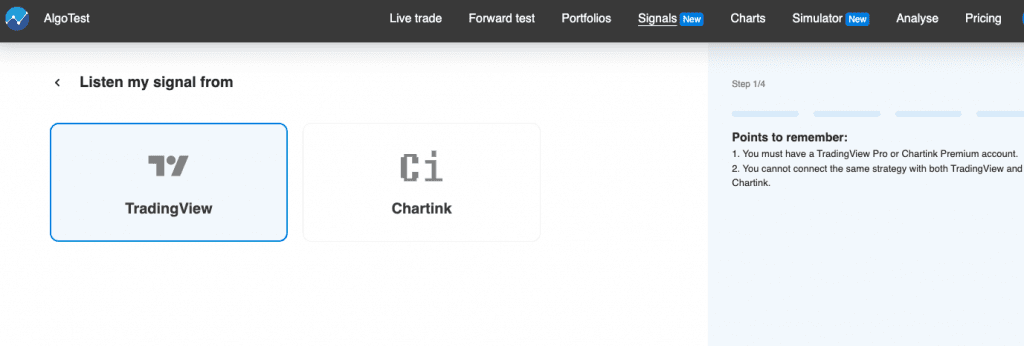 Select 'New Signal' and opt for the 'Trading View' option.