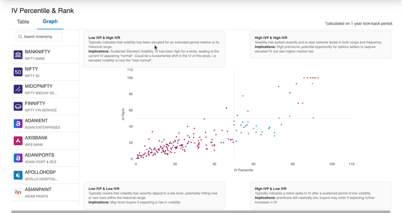 By splitting the IVP vs. IVR scatter into four quadrants, traders can gain a deeper understanding of the market's current state.